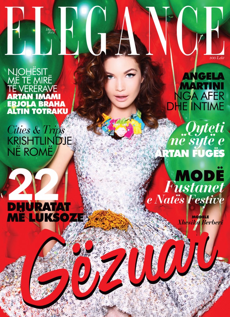 Përfaqësuesja e Shqipërisë në “Miss Universe 2010”, modelja Xhesika Berberi pozon për kopertinën e revistës ELEGANCE, veshur nga Enada At’Nikolla. Foto: Endrit Mërtiri